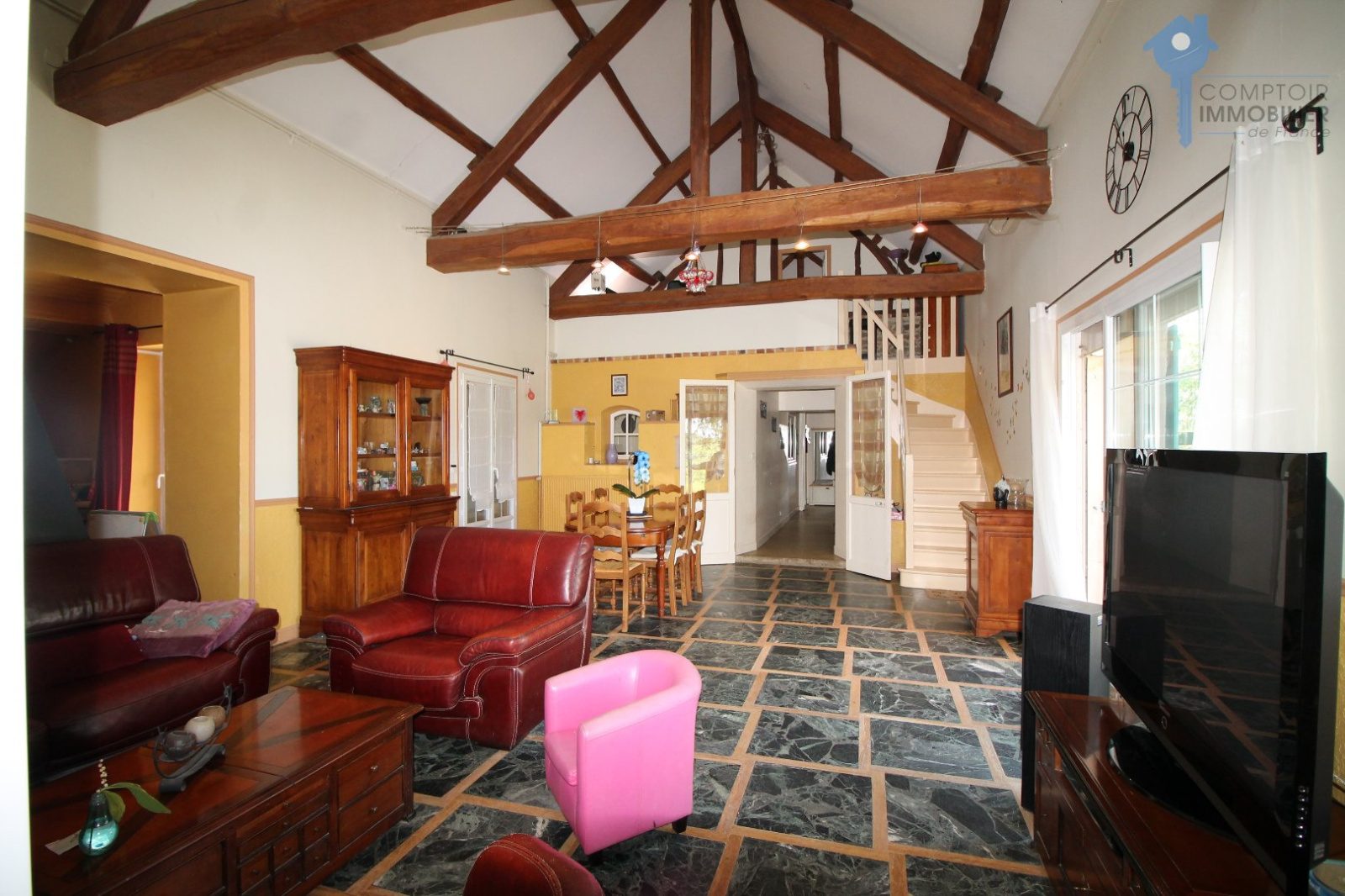 Entre Breval et Buchelay, belle maison de charme fonctionnelle et lumineuse, elle dispose d'un beau salon/salle à manger cathédrale spacieuse ouverte sur la terrasse et jardin, cuisine aménagée et équipée, chambre de 18 m2 environ, salle de douche, wc indépendant. A l'étage, mezzanine, salle de jeux, 2 chambres dont 1 de 19 m2, salle de bains avec wc, dressing. Garage pouvant stationner 2 voitures. Bûcher. Terrain de 6935 m2, idéal pour 2 chevaux. Honoraires charge vendeur COMPTOIR IMMOBILIER DE NORMANDIE - Gilbert GENESTE - 06 61 19 05 67 - Marie NGUYEN - 07 77 96 31 87 - Plus d'informations sur www.cin.immo.com (réf. 10355)